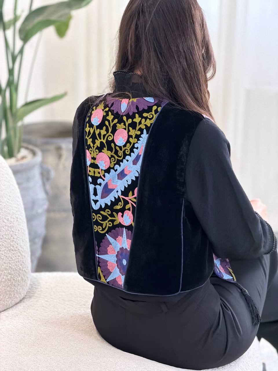 جنس ترکیب مخمل مشکی و بخارا دوزی