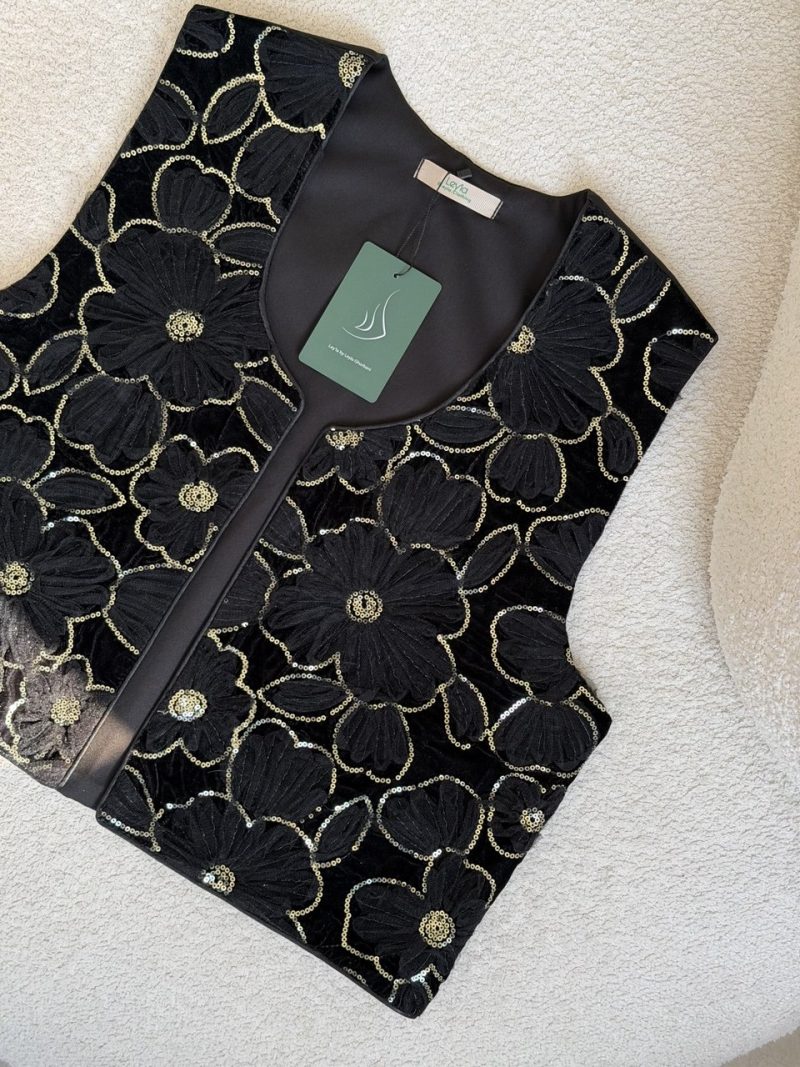 | توضیحات | تماما تور دوزی و پولک دوزی طلایی شده است و دارای آستر می باشد |