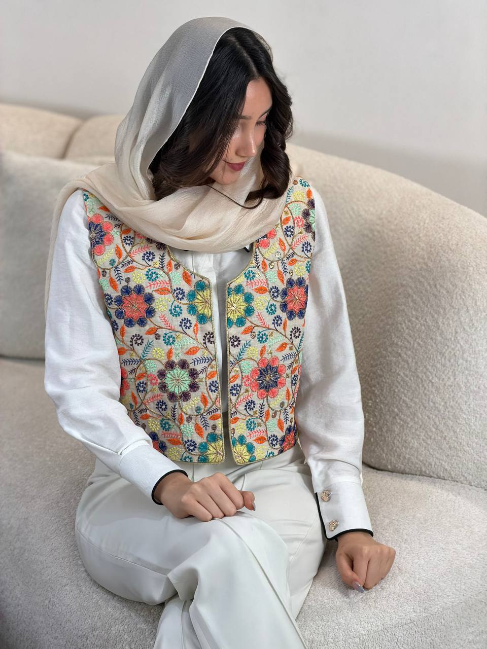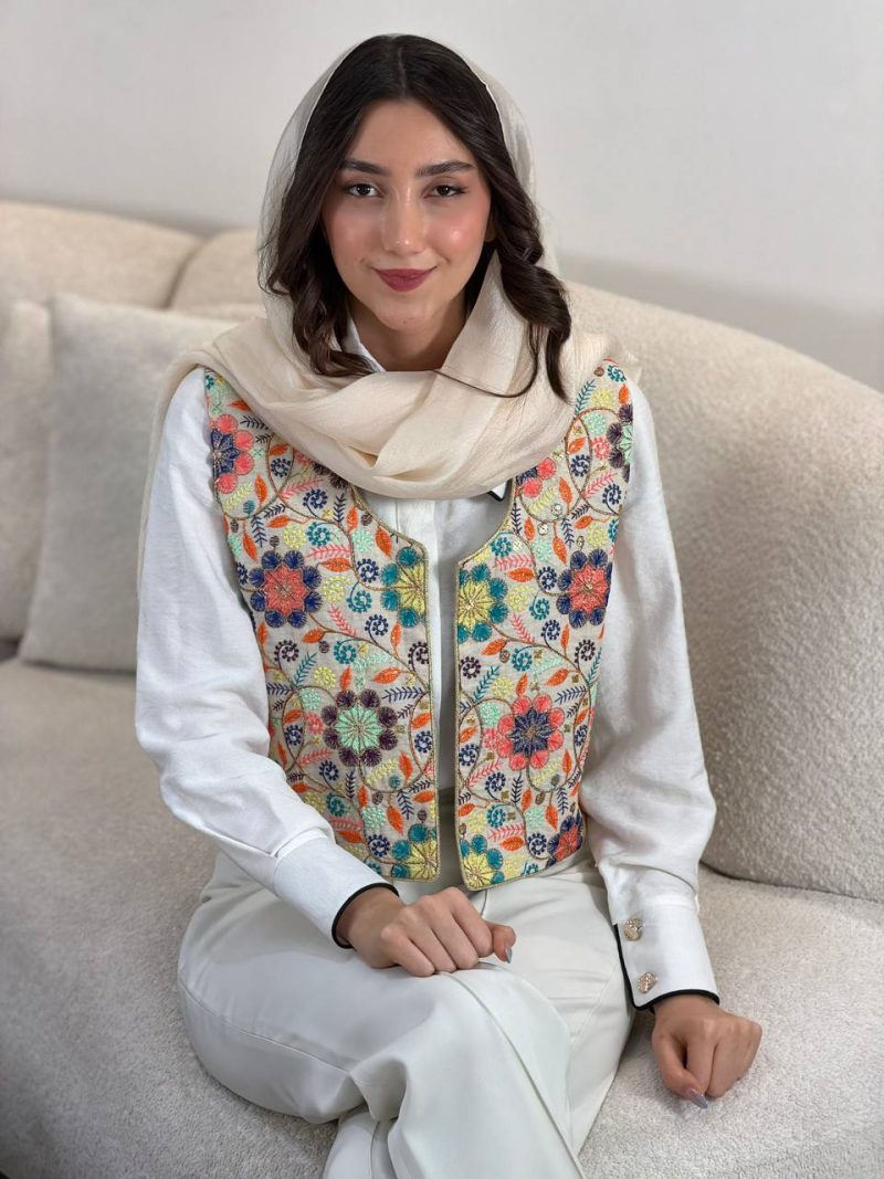 | توضیحات | پشت جلیقه کتان کرم کار شده است.جلیقه آسترکشی شده است و رنگ آستر کرم است. |