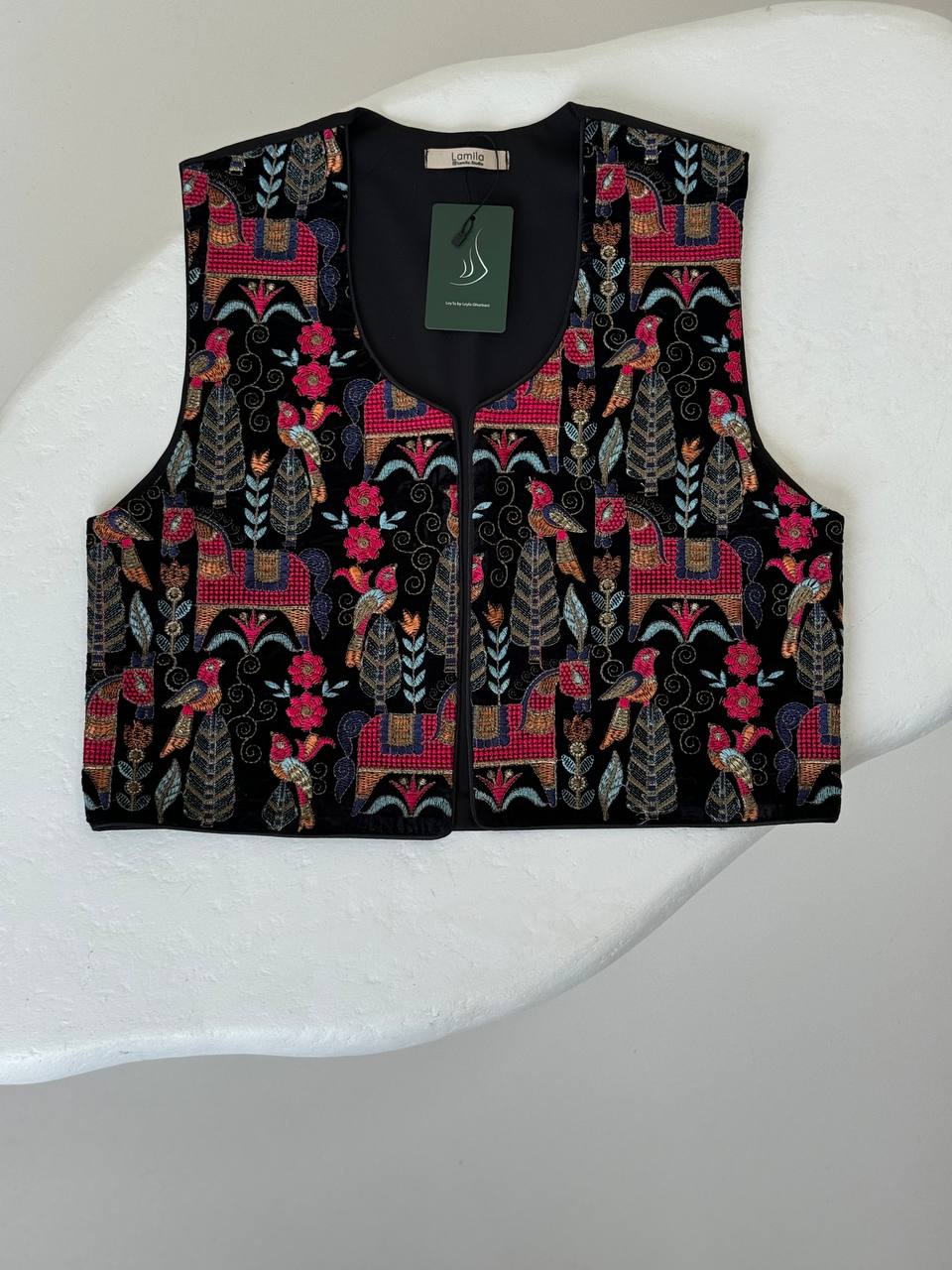لطفا در ثبت سفارش به این نکته توجه شود که در برش پارچه ممکن است قسمتی از طرح پارچه در قسمت جلوی جلیقه قرار گیرد که با عکس سایت کمی متفاوت است.