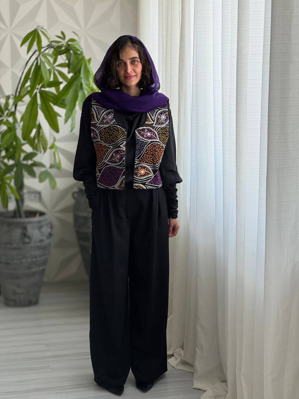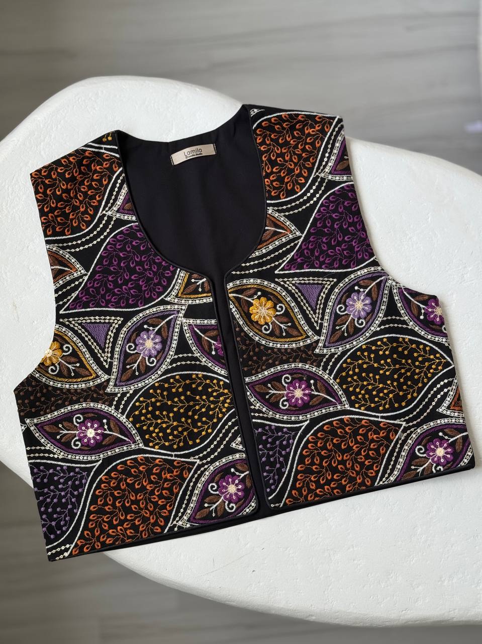 | توضیحات | پشت جلیقه کتان مشکی کار شده است.جلیقه آسترکشی شده است و رنگ آستر مشکی است. |