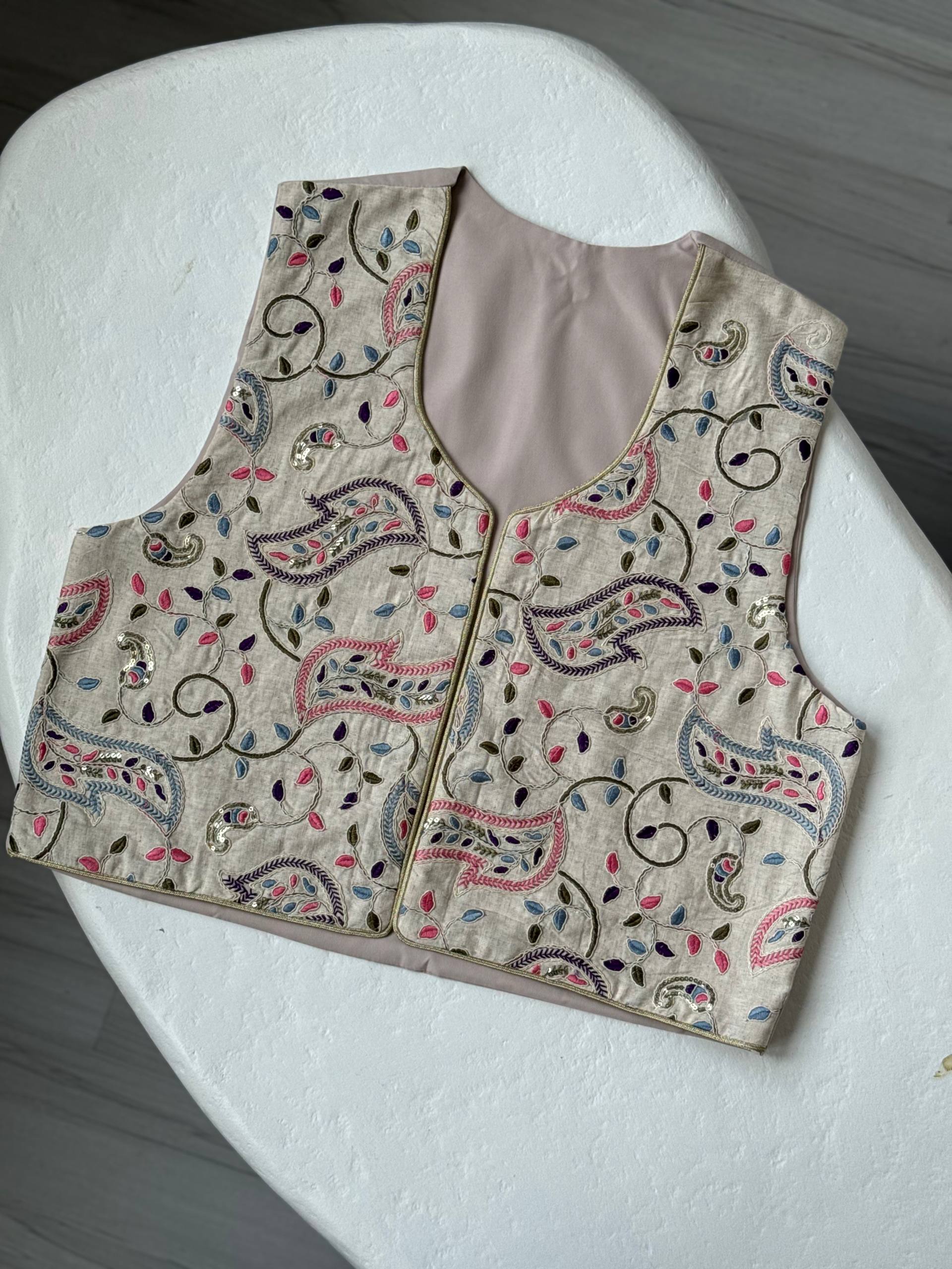 | توضیحات | پشت جلیقه کتان کرم کار شده است.جلیقه آسترکشی شده است و رنگ آستر کرم است. |