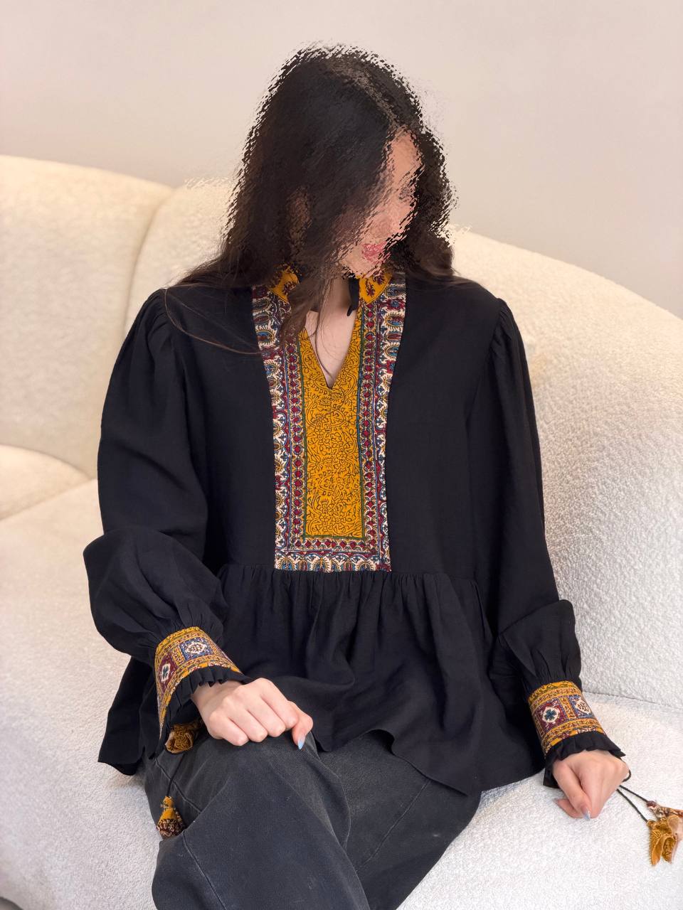 | توضیحات | قسمت جلو و سر آستین شومیز قلمکاری اصفهان است |